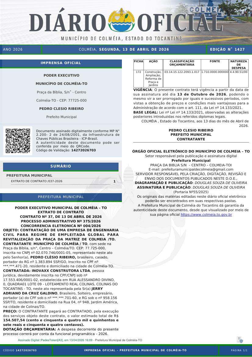 1427ª Edição de segunda, 13 de abril de 2026